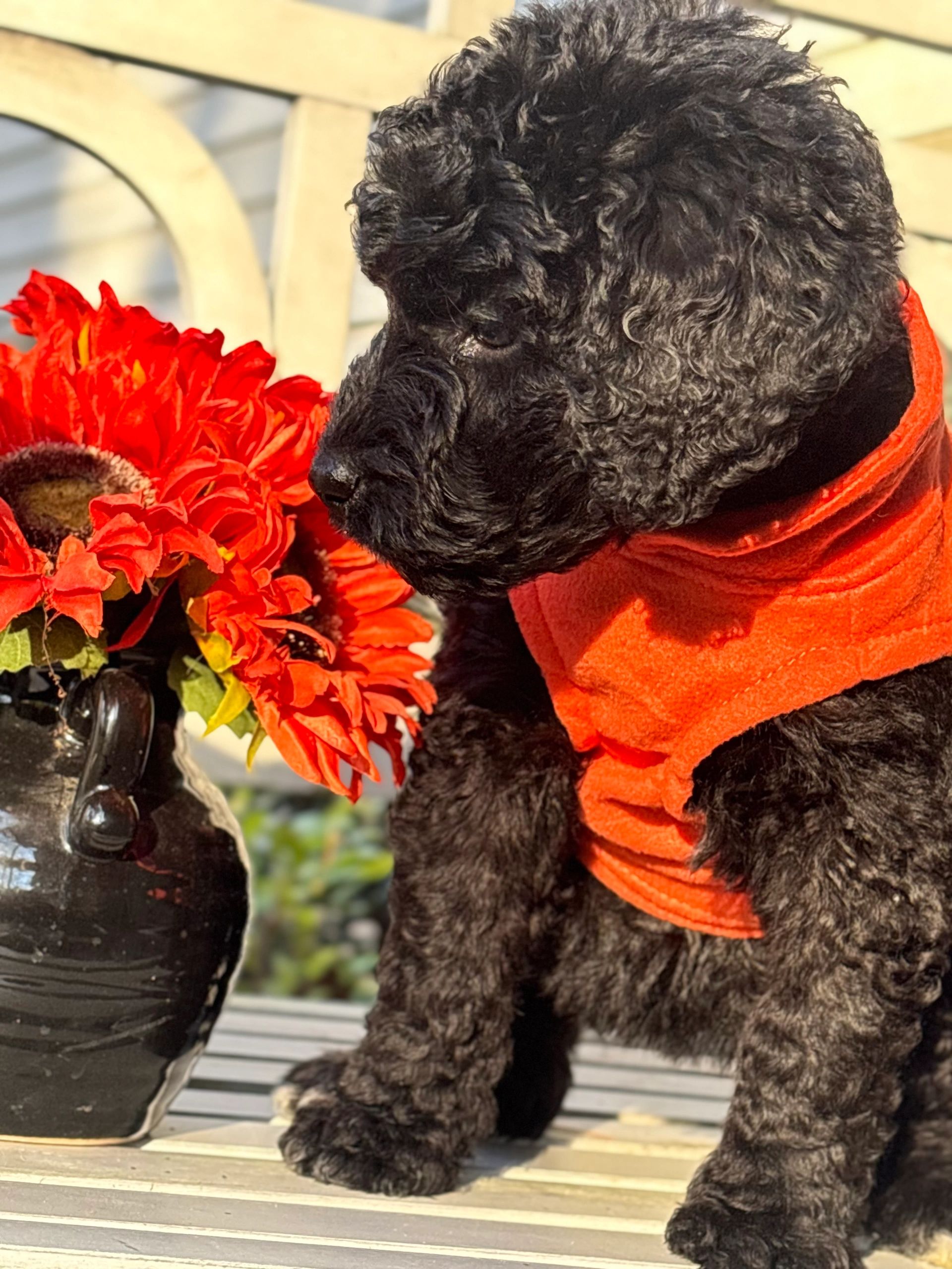 Sizes will vary, but generally, puppies will be 50+ pounds full grown. Coats will be wavy or curly. Colors can be light creams, browns, white, black, phantom, reds, bi colored, and tri-colored, depending on the litter.