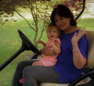 Taking a break with my granddaughter! We went for a ride around the backyard in the golf cart.